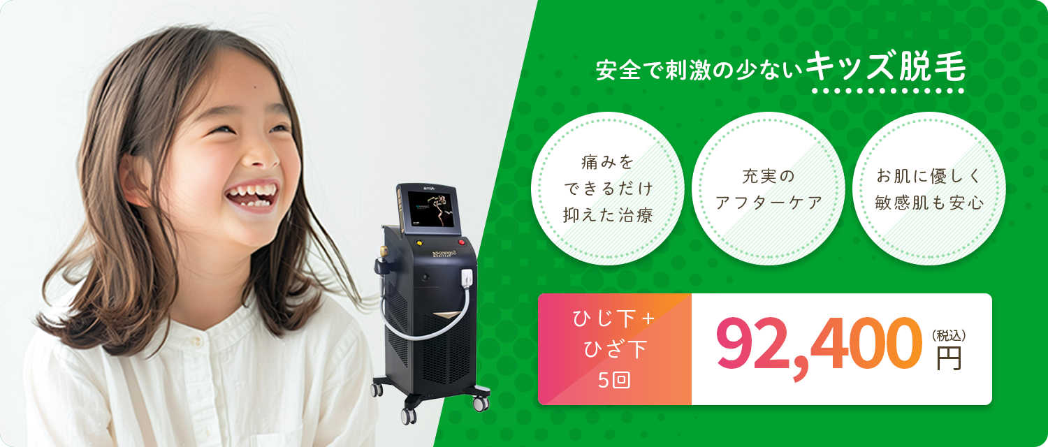 お子さまの成長段階に合わせた、やさしい脱毛ケアが可能です。