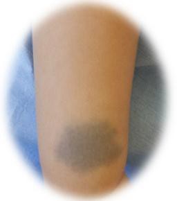 ・生まれつきの青〜青灰色のあざで、おしり以外(肩・腕・背中・顔など)にみられます。